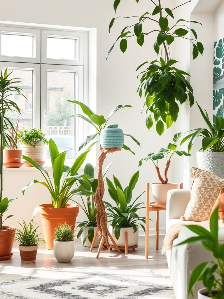 Indoor plants are a simple way to liven up your space. They add color and life without needing any tools or permanent changes. Choose a few different sizes and types to create a cozy, inviting atmosphere.