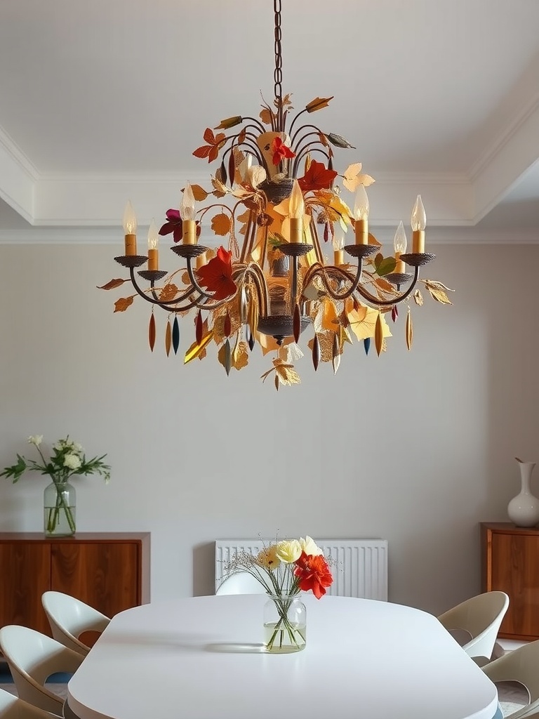 Sculptural lighting fixtures can really change the vibe of your space. A unique chandelier, like one adorned with colorful leaves, acts as both a light source and a piece of art. Your guests will definitely appreciate the creativity and style these fixtures bring to your home.