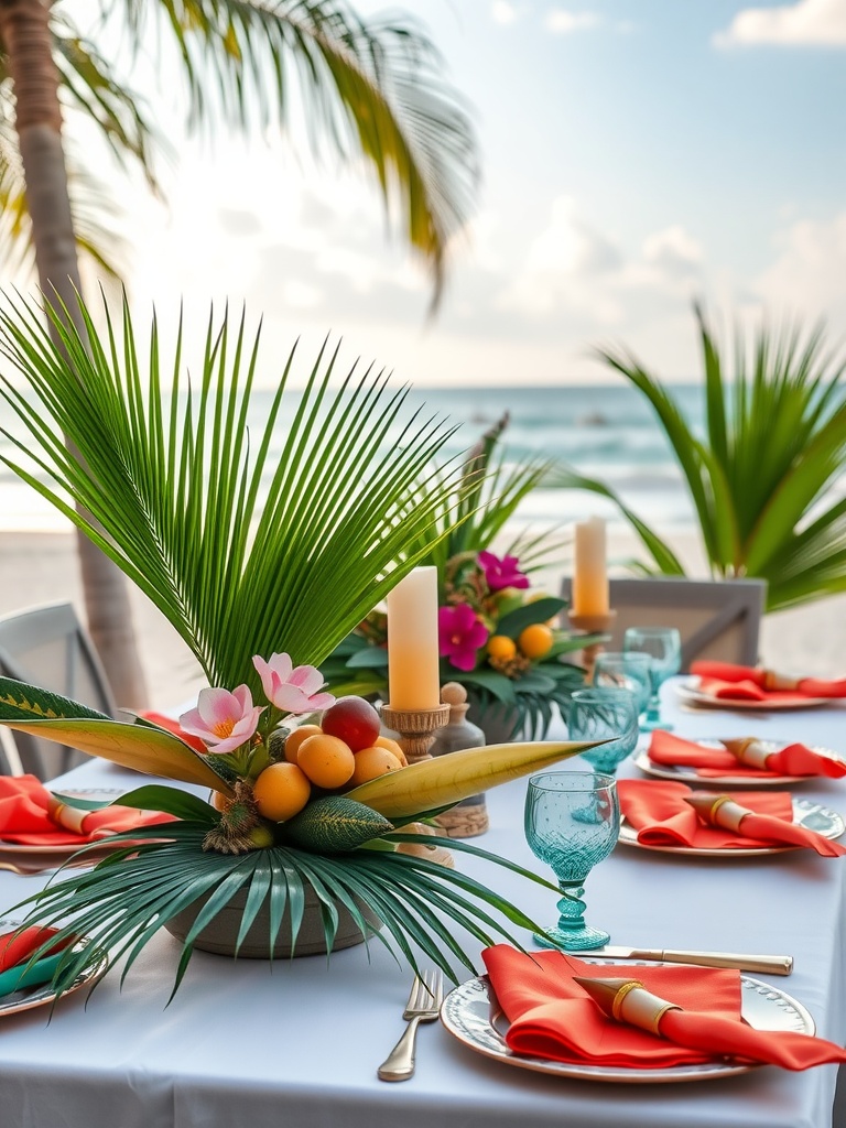 Bring the feel of a tropical getaway right to your dining area! Bright colors and fresh fruit create a lively atmosphere, making meals feel like a celebration. Whether indoors or outdoors, this setup invites everyone to relax and enjoy the moment.