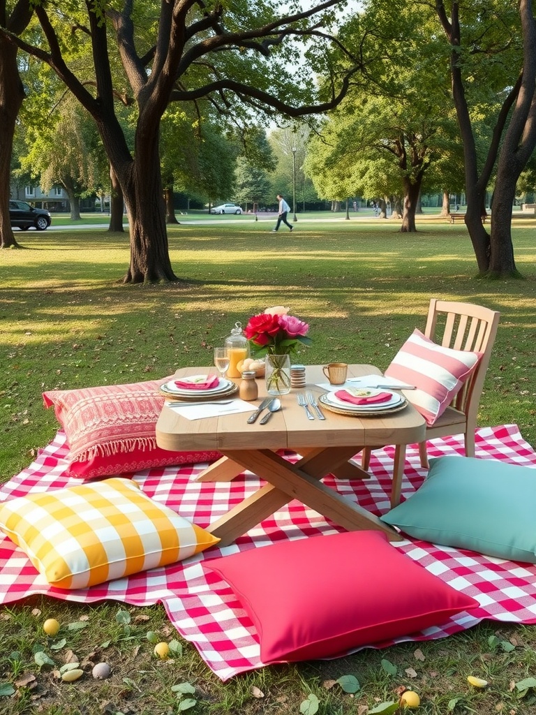 Transform your outdoor dining with a playful picnic vibe that invites everyone to relax. Bright pillows and a cheerful table setting make it easy to enjoy casual meals under the trees. This style is all about comfort and fun, perfect for sharing laughs and good food with friends.