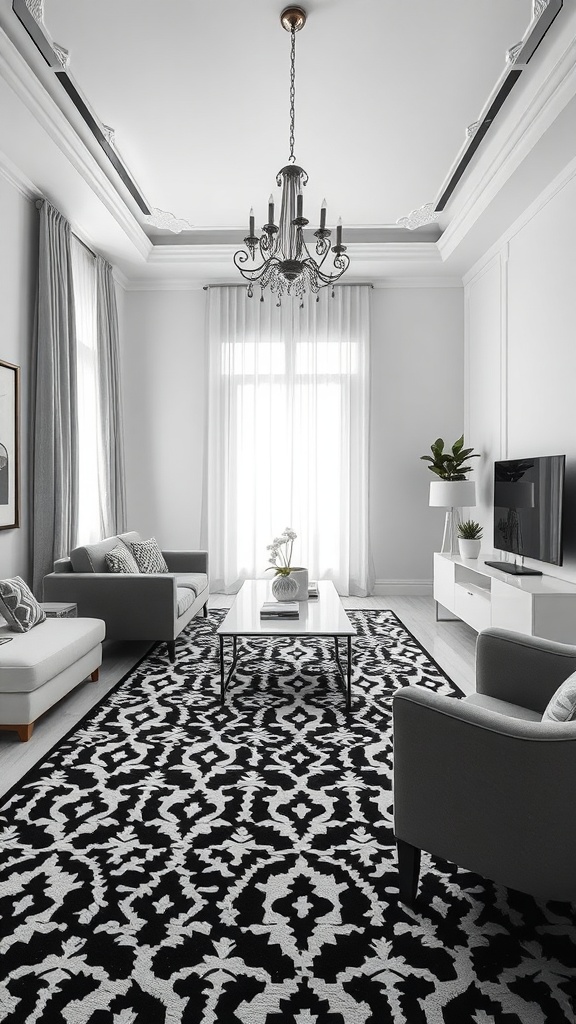 Geometric patterns can really shine in a black and white living room. Using a neutral color palette allows the shapes to pop, creating a sleek home design that feels fresh and inviting. This approach to monochrome decor brings a blend of sophistication and modern living room ideas that are sure to impress anyone who steps through your door.