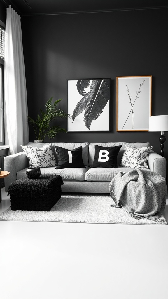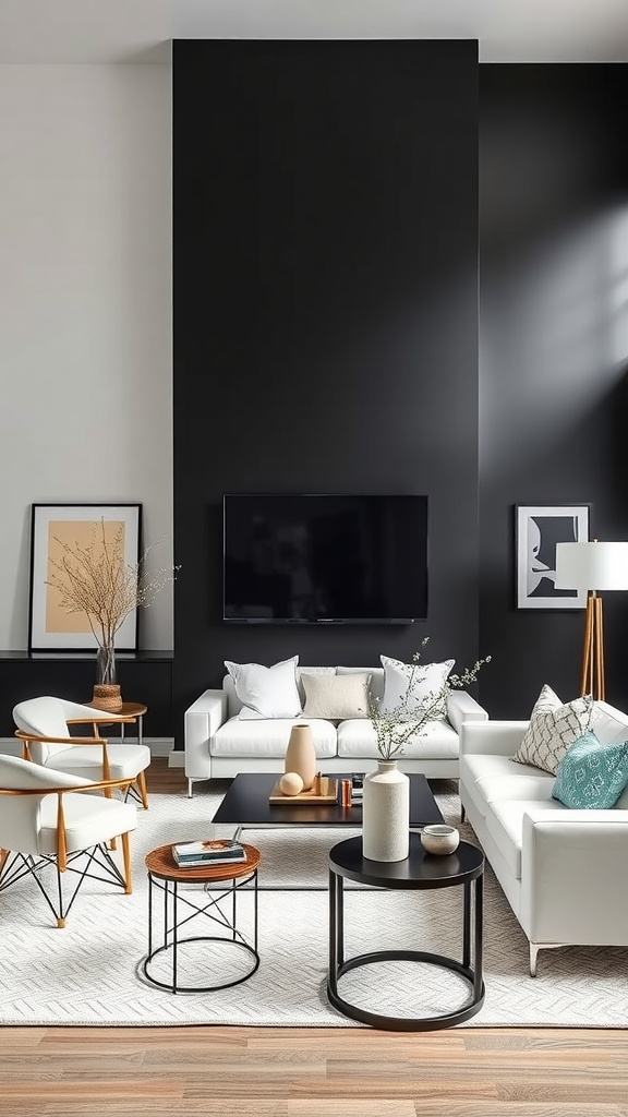Monochrome accent walls are a smart way to bring depth and character to your black and white living room. A bold black wall can create a striking contrast against lighter furniture, adding a touch of sophistication to your space. Pairing this with minimalist living room decor keeps the vibe sleek and modern, making it a great choice for contemporary decor enthusiasts.