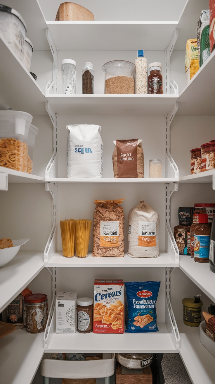 If you’re looking for a simple way to elevate your pantry game, adjustable shelf dividers are here to help. These handy tools work wonders in a small pantry by helping to keep everything neatly organized. No more cereal boxes tipping over or bags of pasta spilling—everything has its own place!