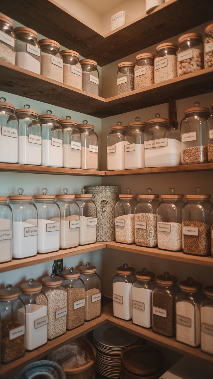 Choosing clear jars lets you see everything at a glance, and the uniformity creates a cohesive look in your pantry. Plus, it’s a great way to repurpose bulk purchase items, reducing waste while keeping your pantry tidy.