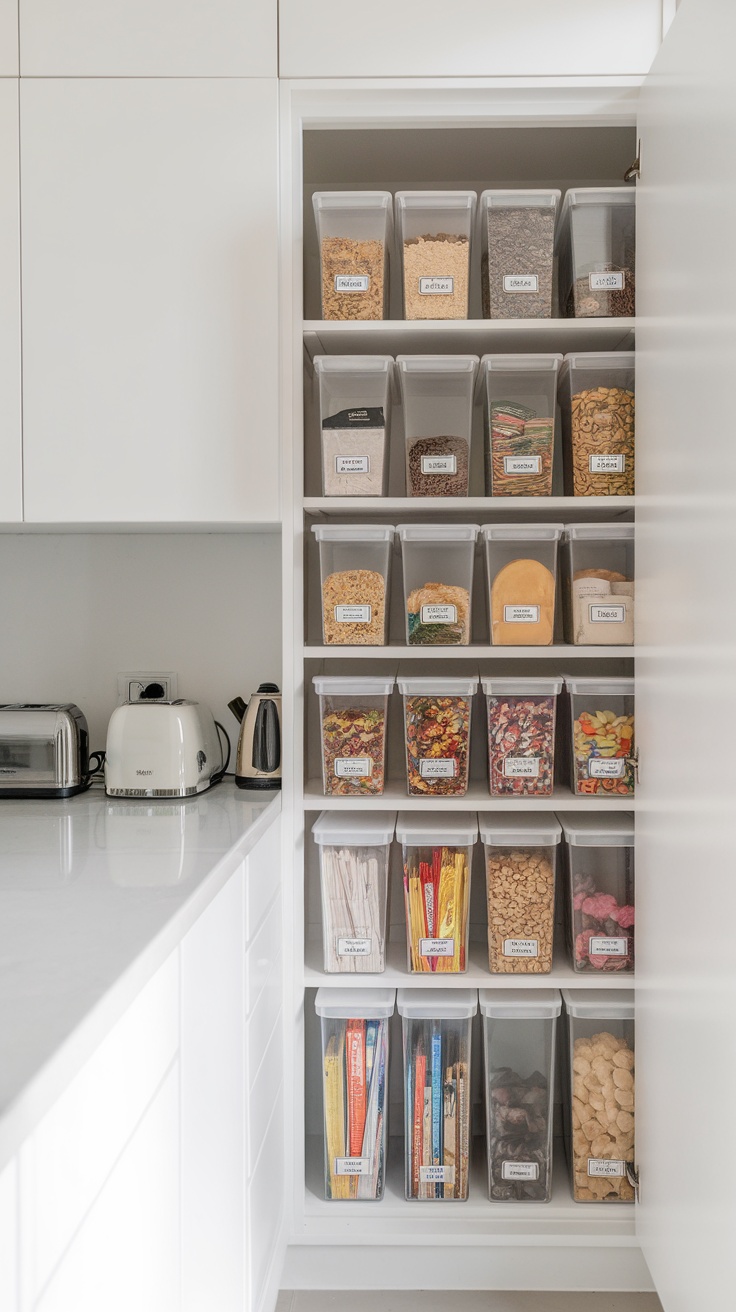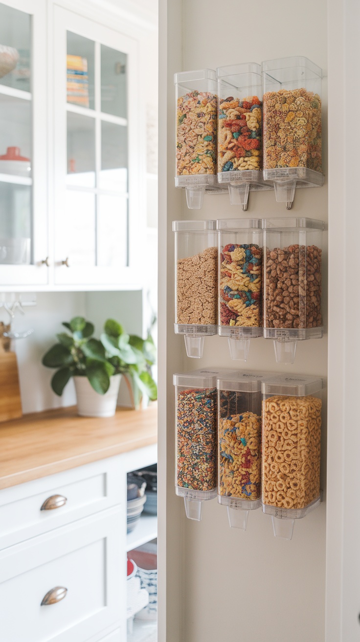 For small pantry ideas, consider labeling each dispenser. This way, everyone in the family knows where to find their favorite cereals. You can also use these dispensers for more than just cereal—think granola, nuts, or even candy! This versatility helps to keep your pantry looking tidy and cohesive.