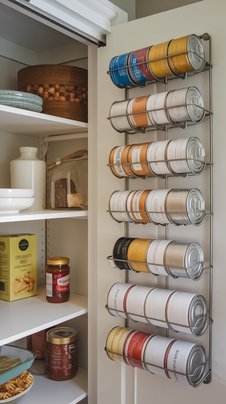 One of the most clever kitchen storage solutions is utilizing door-mounted can storage. This system not only keeps your cans organized but also saves valuable space in your pantry. By placing the rack on the inside of your pantry door, you create an easy-access area that doesn’t clutter your shelves.