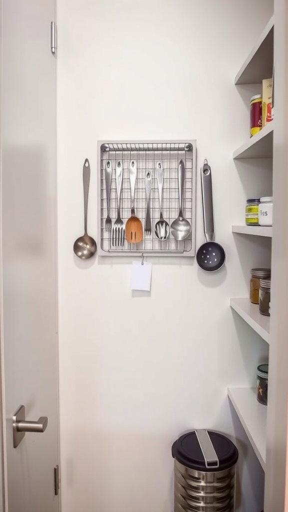 One of the simplest yet effective ways to optimize a small pantry is by using hanging hooks for utensils. This clever storage solution not only maximizes vertical space but also keeps your essential tools within easy reach. Imagine grabbing your measuring cups or spatula without digging through a cluttered drawer.
