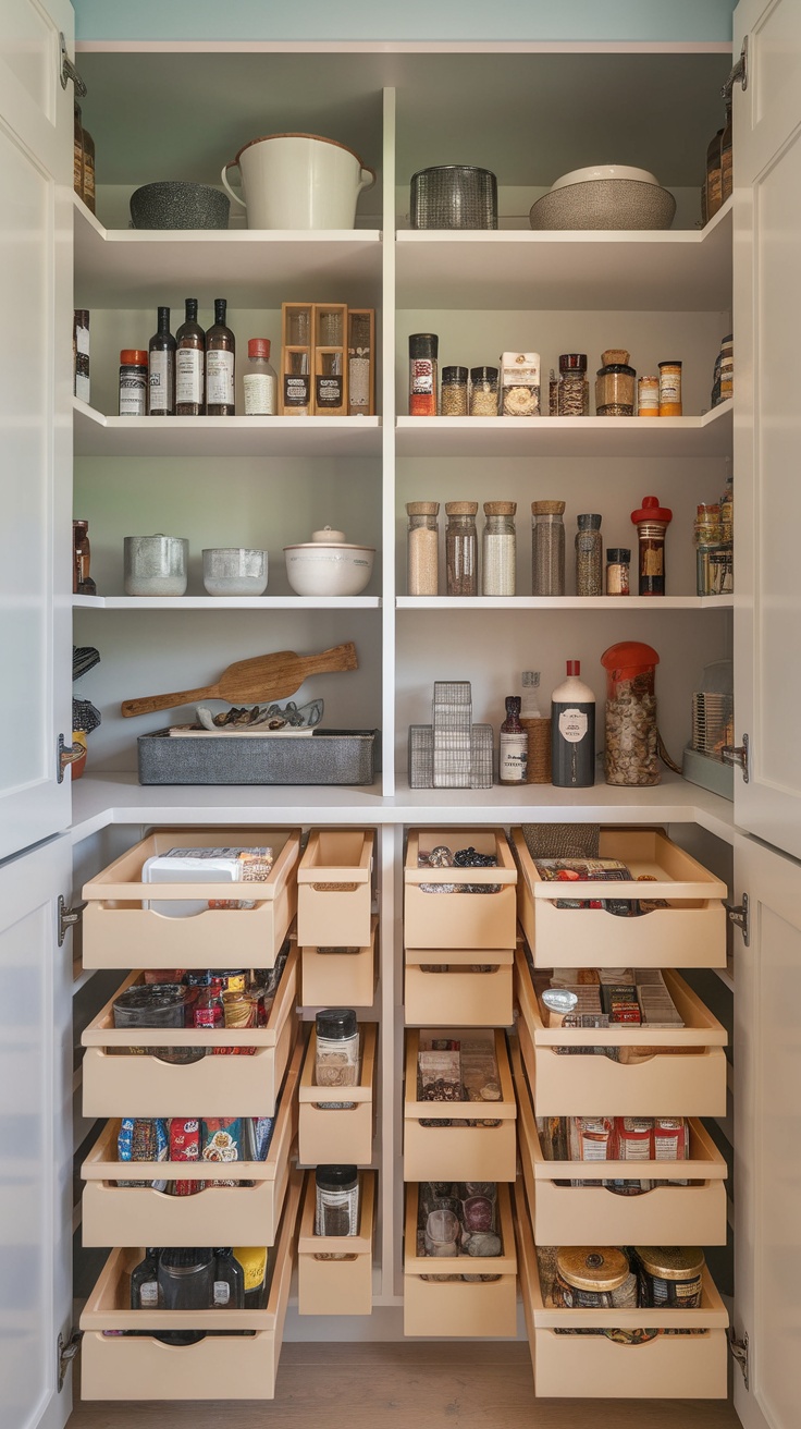 Whether you’re organizing spices or snacks, these sliding drawers can be a helpful addition to your kitchen storage solutions. They not only help you find items quickly but also keep your pantry looking tidy. If you’re searching for small pantry ideas, consider integrating these drawers into your design for better functionality.