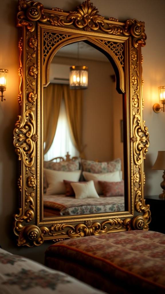 Incorporating such mirrors can enhance the overall aesthetic of your room. The reflective surface not only brightens up the space but also creates an illusion of depth, making your bedroom feel larger and more inviting. Pair it with ethnic patterns found in Moroccan rugs or fabrics to complete the look.