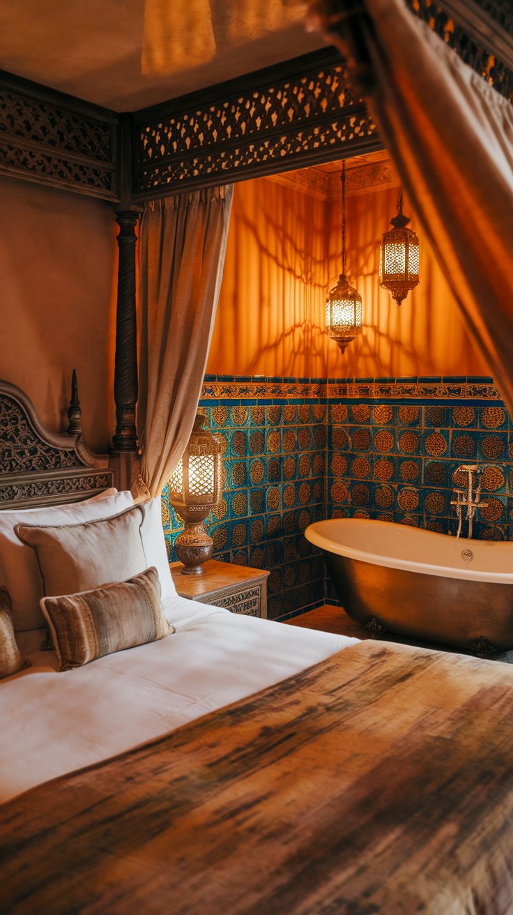For those looking to embrace the essence of Morocco in their homes, decorative mirrors can serve as statement pieces. Consider adding Moroccan lanterns nearby to enhance the ambiance even further. These elements work well together, creating a cozy yet exotic vibe that is ideal for luxury bedroom inspiration.