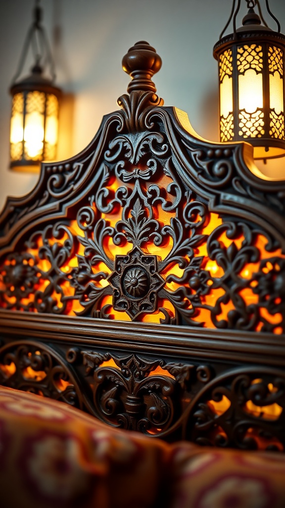 If you’re looking for luxury bedroom inspiration, consider how these headboards can be paired with other Moroccan decor elements. Think about layering textures, incorporating colorful throws, and using warm lighting to bring the whole look together. The intricate details of the headboard, combined with the warm hues of the lanterns, perfectly complement the rich, vibrant tones found in traditional Moroccan designs.