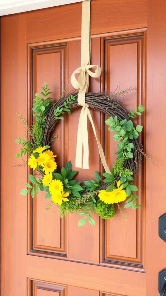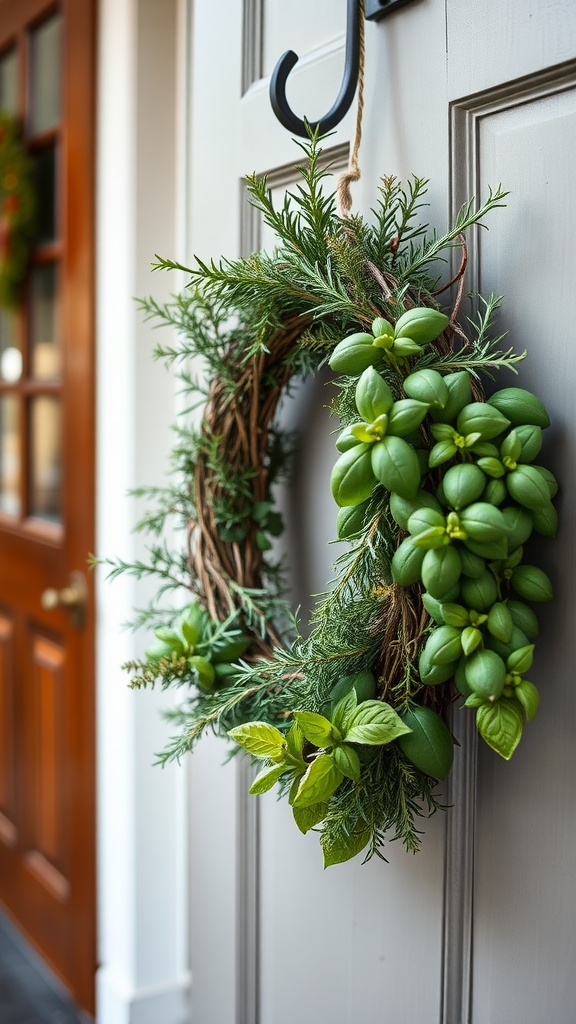 This herb garden wreath adds a fresh touch to your front door. Made with faux greens, it brings a bit of nature right to your entryway. Plus, it’s an easy DIY project that can brighten your home all summer long!
