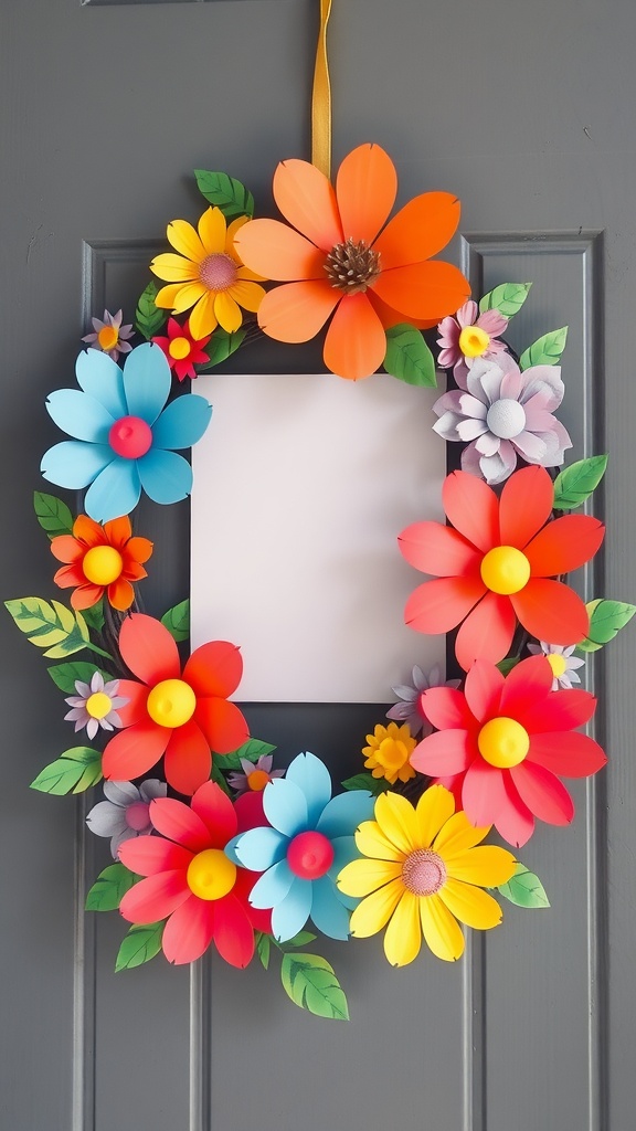 This colorful paper wreath is a fun and cheerful way to welcome summer. Made with vibrant flowers and leaves, it adds a pop of color to your front door. You can easily customize it to match your style and enjoy a bit of creativity in your home decor.