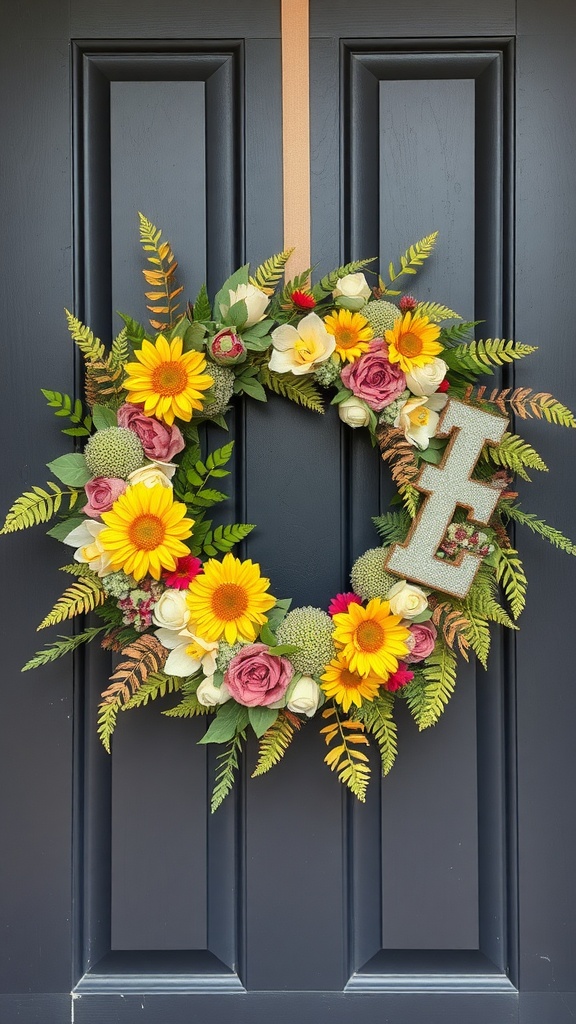 An eclectic summer wreath is a fun way to add a splash of color to your front door. With bright sunflowers, soft roses, and lush greenery, it brings a cheerful vibe to any entryway. Personalize it with a letter or a unique charm to make it truly your own!