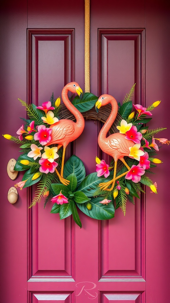 Add a splash of color to your front door with a fun flamingo wreath! This cheerful design features two vibrant flamingos surrounded by tropical flowers and lush greenery, making it a perfect summer statement. It’s an easy DIY project that will surely brighten up your entrance and bring smiles to your guests.