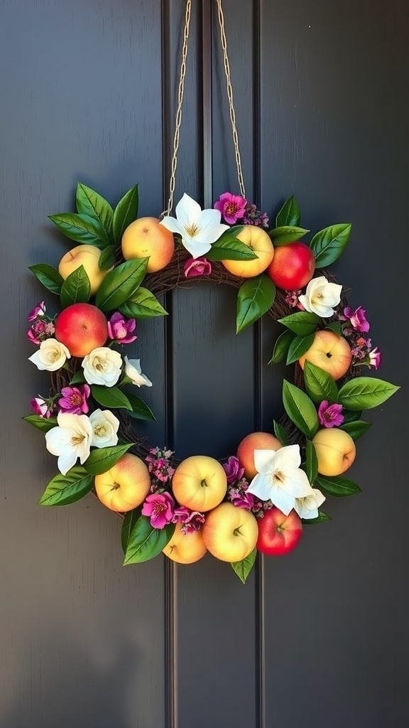 Add a splash of color to your front door with a fruit and flower fusion wreath. This design combines vibrant faux apples with delicate blooms, creating a cheerful vibe perfect for summer. Hang it up and watch your entryway come to life!
