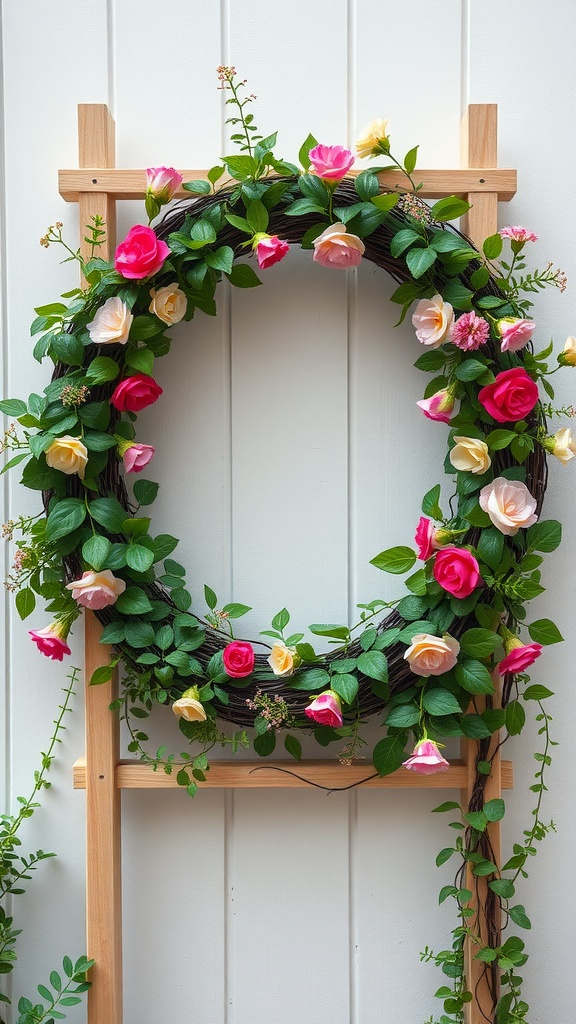This charming garden trellis wreath is a lovely way to bring a touch of nature to your front door. With colorful blooms intertwined with lush greenery, it gives a fresh vibe that’s perfect for summer. Hang it up and enjoy the cheerful welcome it offers to guests all season long!