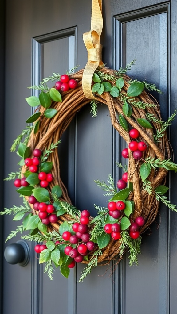 A grapevine and berry wreath is a cheerful addition to your front door. The natural twigs paired with bright berries create a lively look that welcomes summer vibes. It’s easy to make and adds a touch of nature to your entryway.
