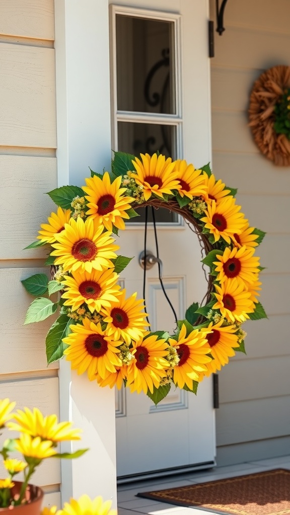 This sunflower wreath brings a cheerful vibe to your front door. With bright yellow blooms and a touch of greenery, it’s perfect for summer days. Make this DIY project to welcome friends and family with a burst of sunshine!